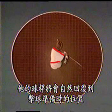 3。曲腕L型直到腰際才啟動上半身。上半身的轉動,必需要整片,左肩和右肩都要往左後方轉過去,不可以向左上方走。
