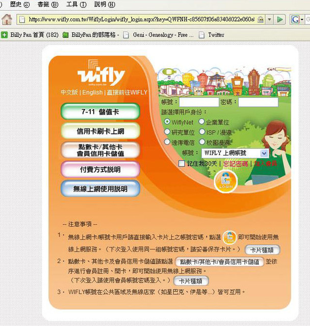 很快地跳出了7-11的Wifly畫面.....不過,就只能看這一頁,因為這是要錢的!
